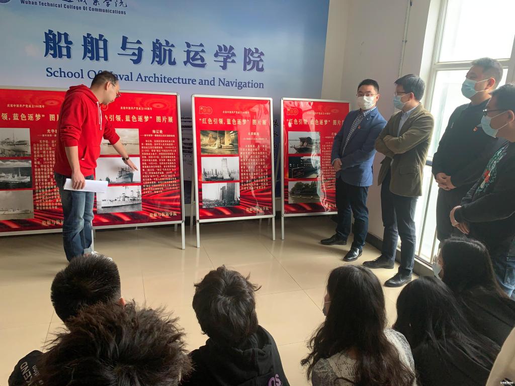 为庆祝中国共产党成立100周年,让广大基层党员在学“党史”中常学常新,不断感悟,进一步汲取精神力量,升华理想信念,船舶与航运学院开展“红色引领,蓝色逐梦”图片展活动。党委学生工作部部长阮谦、副部长王刚,团委书记唐安宁,财务处处长孙远伟,总务处处长冯可可、副处长廉智远、王听,以及学院“三进一融”教师、师生党员参加展览活动。