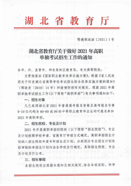 凡已取得湖北省2021年普通高考报名资格且高考报名号第9-10位代码为80-89或99的中等职业教育毕业生均可报名参加新葡的京集团8814vip高职单招。