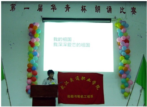 (李科)技能文化节期间,为更好地配合学院“读书明志”暨“经典诵读”活动,进一步增强同学们的民族自豪感,提高语言的表达能力和应用水平。5月11日晚,船舶与轮机工程系在教师楼二楼会议室举办了第一届“华青杯”朗诵比赛。