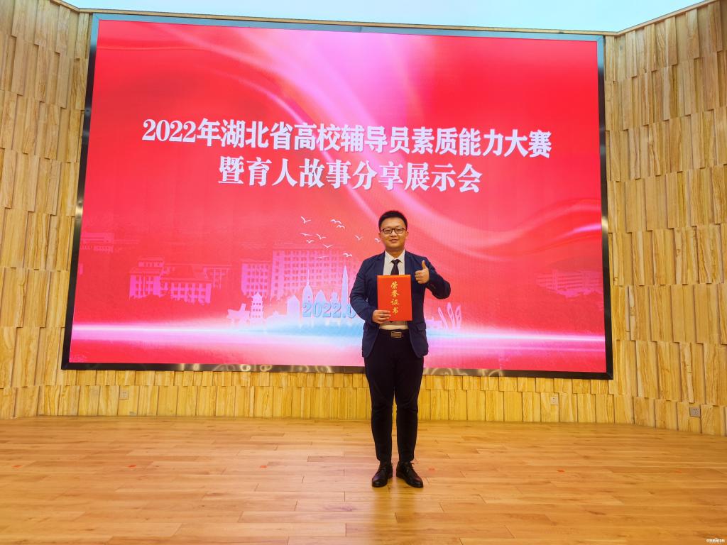 新闻网讯(记者 汪云凤)4月27日,第十届湖北省高校辅导员素质能力大赛颁奖典礼在华中科技大学举行。我校物流学院辅导员崔博文老师荣获一等奖,是唯一来自高职院校的一等奖获得者。