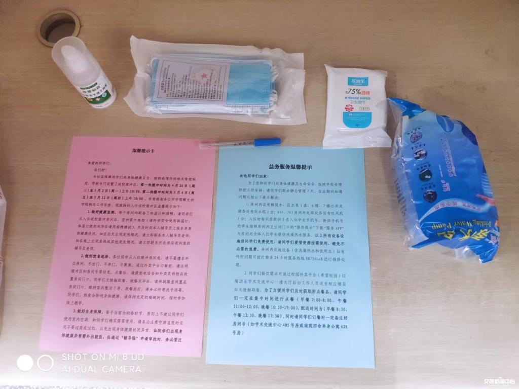 电子与信息工程学院20电子(1)班的曾杰也是本次返校的学生之一,被安排在南苑四舍7楼缓冲区。“老师们为了我们顺利返校付出了很多,听说周五那天下大雨,很多老师都是冒雨在搬行李,学校真的是一切为了学生,而且考虑的很全面,同时保证了我们和已经返校的大部分同学的健康和安全,心里是满满的感动”。