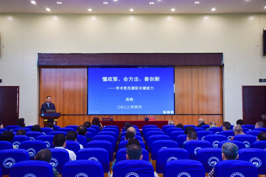 校长周慎为校院两级学术委员进行主题为“懂政策、会方法、善创新——学术委员履职关键能力”的培训。周慎校长列举了党的十九大以来,党中央、国务院推出的一系列职业教育改革发展的重大举措,介绍了“十四五”期间职业教育改革发展政策框架,指出要从类型特色、产教融合、校企合作、教学改革、打造品牌等方面推动学校高质量发展。周慎校长强调,要科学工作、主动创新,在参与学校重大工作研究和决策时,发扬专业精神,发挥学术特长,积极为学校建设发展建言献策、贡献力量,充分发挥两级学术委员会在学校学术治理体系中的核心作用,助推学校学术发展繁荣。