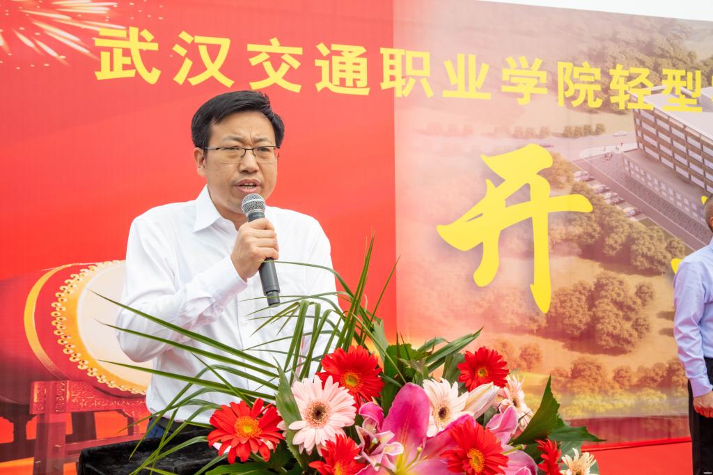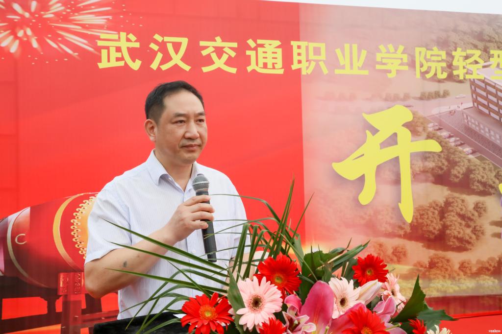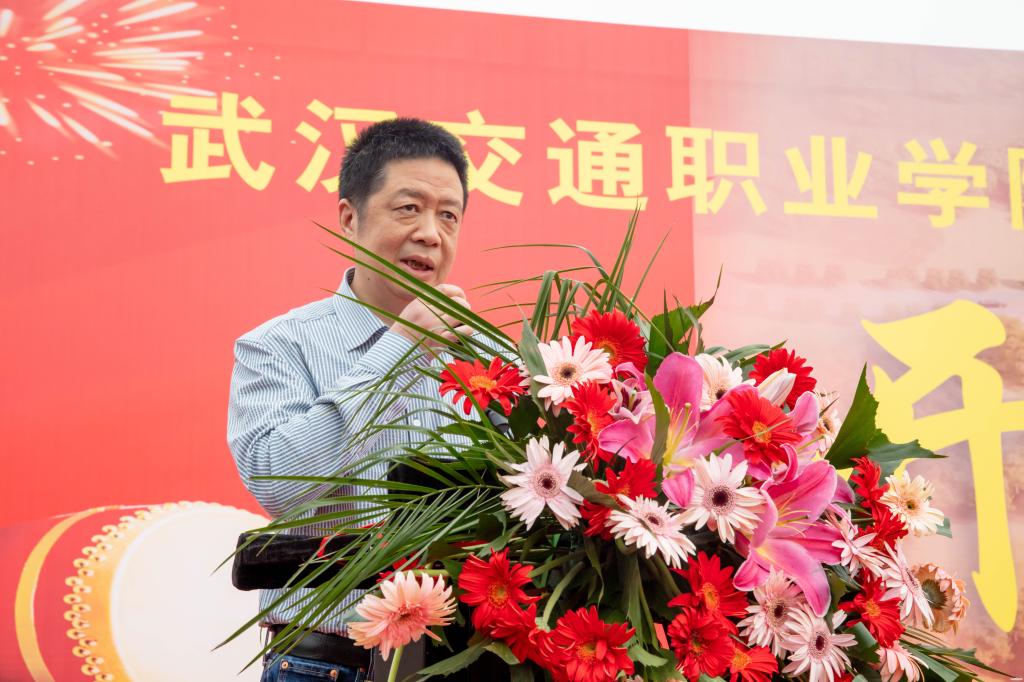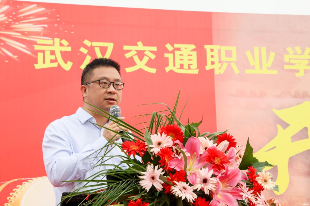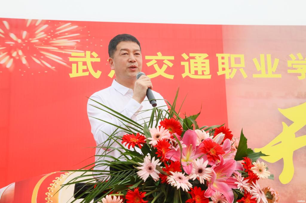 武汉市洪山区人民政府青菱街道党工委书记陈磊致辞。陈磊书记表示,学校自建校以来,为国家交通事业和地方经济的发展输送了十五万余名交通管理干部和技术技能人才,形成了突出的行业职教办学优势,积淀了深厚的办学底蕴。街道将继续加大对学校各项工作的支持力度,做好助推学校高质量发展的服务工作,为营造和谐学校、和谐社会的良好氛围做出贡献。
