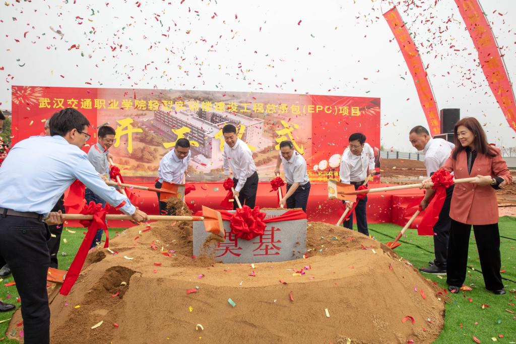新闻网讯(记者 汪云凤)3月16日上午,学校举行轻型实训楼开工奠基仪式。学校党委书记杨震宣布轻型实训楼建设项目正式开工。学校校长周慎、在校校领导、武汉市洪山区人民政府青菱街道党工委书记陈磊、中铁十一局集团建安公司党委书记王采成、中韬华胜工程科技有限公司总经理周玉锋、项目各参建方代表、轻型实训楼建设专班成员出席仪式。仪式由学校副校长钟辉主持。