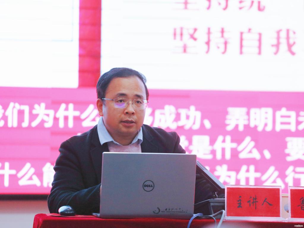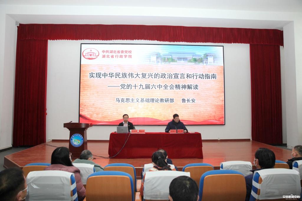 新闻网讯(记者 汪云凤)1月6日下午,学校在明德楼223报告厅举行学习贯彻党的十九届六中全会精神报告会。省委讲师团成员,中共湖北省委党校马克思主义基础理论部副主任鲁长安同志作辅导报告。学校党委书记杨震同志主持报告会。党委理论学习中心组成员、各党总支(直属党支部)书记、中层干部、马克思主义学院教师及辅导员参会。