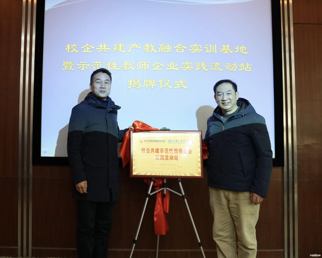 周慎校长和夏雨董事长共同为“校企共建产教融合实训基地”“校企共建示范性教师企业实践流动站”揭牌