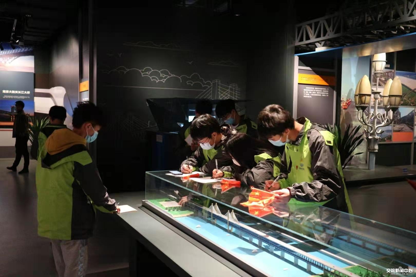 青年学生拿到课程设计的“学一学、看一看、找一找”实践任务卡片后,跟随讲解员的脚步一同入馆参观。任务卡上写有刚才授课的问题和中国桥梁变迁的问题,需要学生在博物馆内寻找正确答案。这种“寻宝式”任务,极大调动起学生学习的主动性,现场随处可见或是学生三两人一起认真讨论,亦或是当听到讲解员的内容涉及题目便赶紧记下的场面。
