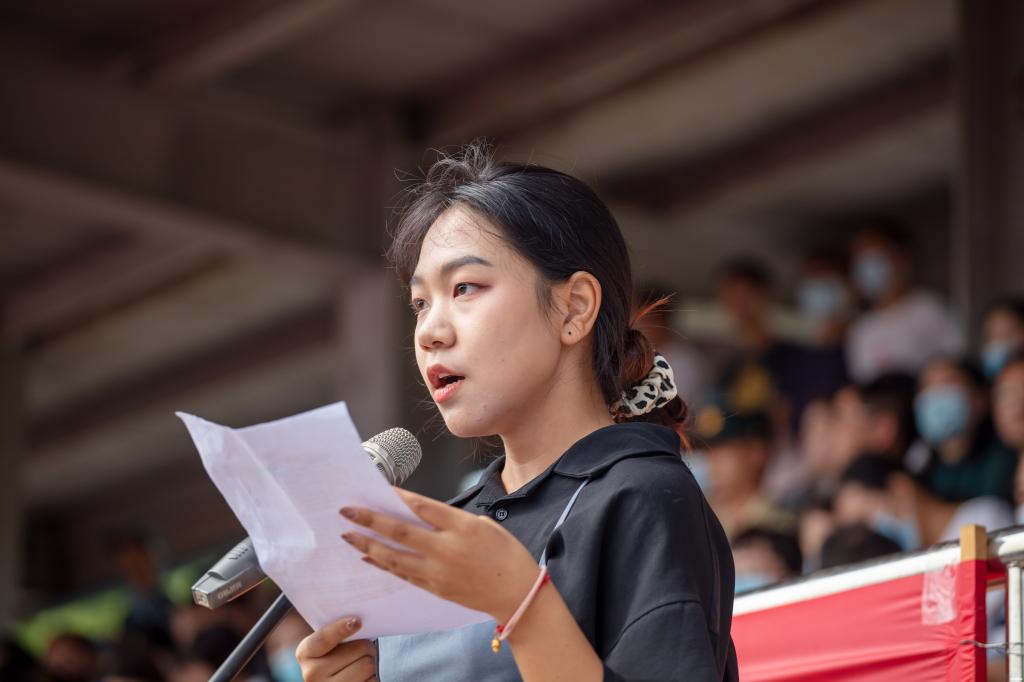 2021级新生代表蒋逸雯,2021届优秀毕业生代表刘佳诗、马紫艳、张曙,教师代表史婷老师先后发言。