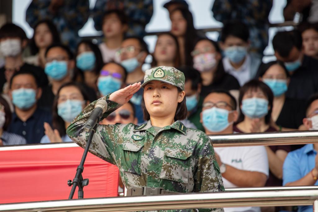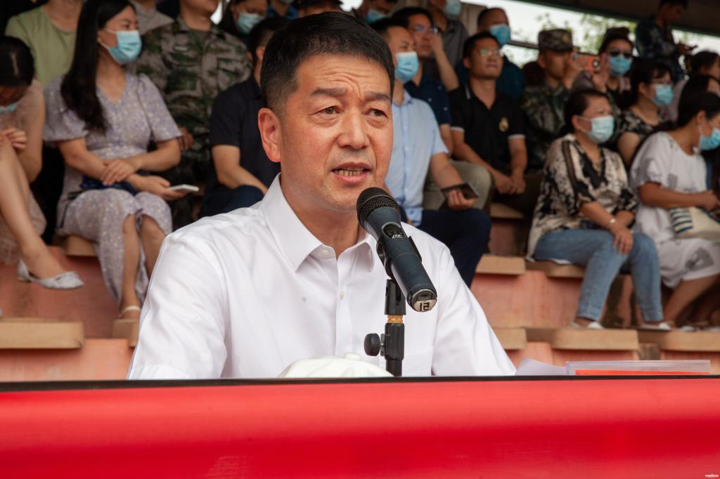 学校党委书记杨震代表学校向圆满完成军训任务的2021级新同学表示真挚祝贺!向辛勤承训的教官、士官班同学及军训中辛勤工作、无私奉献的师生员工表示衷心感谢!