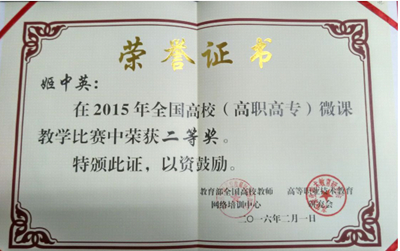 由教育部全国高校教师网络培训中心、高等职业技术教研究会联合举办的2015年全国高校(高职高专)微课教学比赛圆满落幕,我校教务长、物流学院院长姬中英教授在本次比赛中荣获省赛一等奖,国赛二等奖。