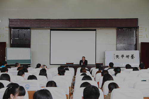 (程艳)为传承中华传统文化,提升师生艺术修养,营造富有书香气息的校园文化氛围,3月24日下午,中国书法家协会会员,湖北省高教书法教育专业委员会理事高洪斌先生应邀为我校师生带来了一场精彩的书法知识专题讲座。艺术学院院长徐火球、学院全体师生、校书法协会会员参加了此次活动。