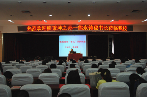 (李耿 张紫葳 李瑞雪)3月22日下午,由我校团委主办、经管学院承办的“辛亥后裔话首义”主题讲座在我校南苑三楼多功能报告厅火热进行,此次讲座特邀辛亥革命第一枪熊秉坤之孙、武汉辛亥首义研究会秘书长熊永铸先生主讲。