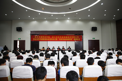 随后李水土总经理介绍了“双环传动机械学院”成立以后的目标和发展规划。何伟院长就与双环公司校企合作过程进行了介绍。最后,副校长余小三与浙江双环传动机械有限公司领导签订了校企合作协议书,并进行了授牌。