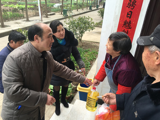 (吴 飞)欢度元宵佳节,喜迎盛世新春。2月22日,学校驻农村工作队与驻点对口村大队西湖二大队张元芳书记一起,前往西湖二大队贫困户家中嘘寒问暖,送去汤圆等生活物品,和他们共同度过喜庆、祥和的元宵佳节。