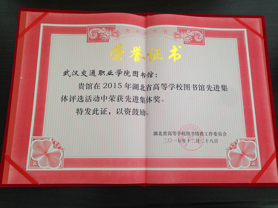 我校图书馆在会上被授予2015年湖北省高等学校图书馆先进集体奖与首届湖北省职教院校“起点杯”阅读竞赛优秀组织奖。