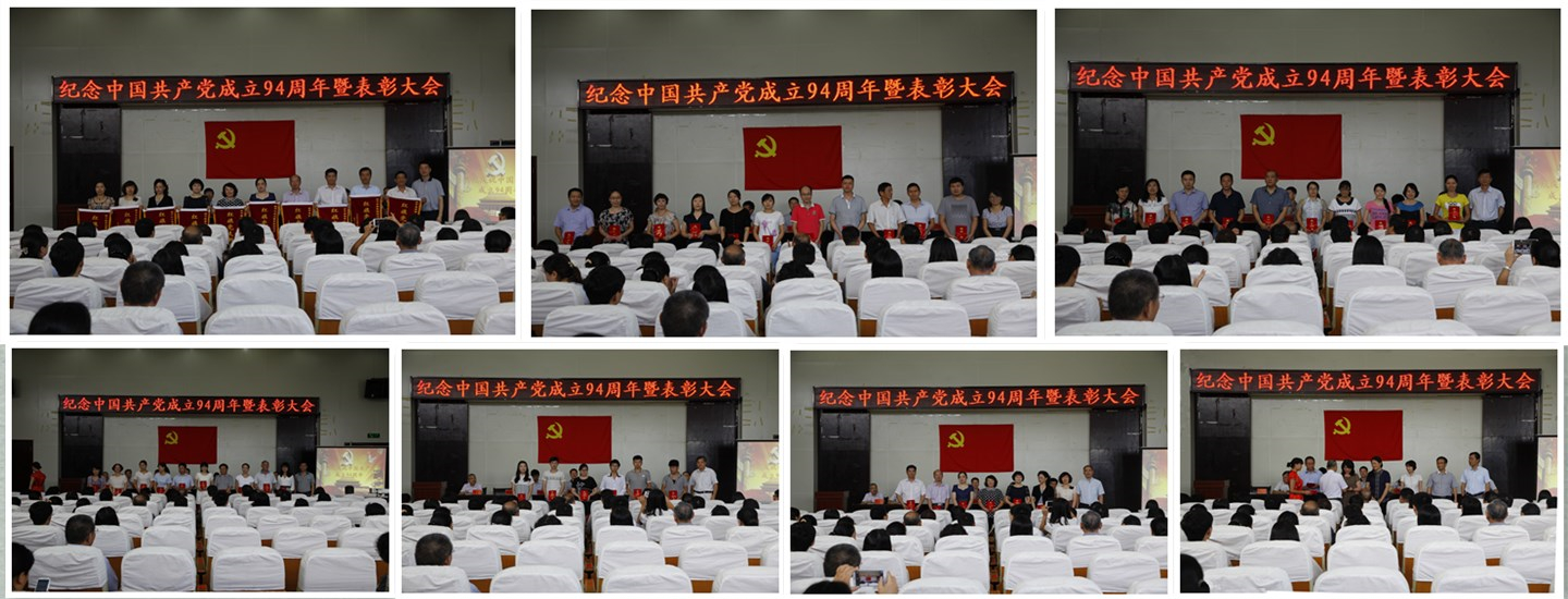 (马琼)7月1日上午,我校纪念中国共产党成立94周年暨表彰大会在行政楼一号会议室隆重举行。全体校领导、各党总支书记、直属支部书记、团总支书记,教师党支部书记,受表彰人员,新发展党员代表、师生代表参加会议。大会由党委副书记、校长王进思主持。