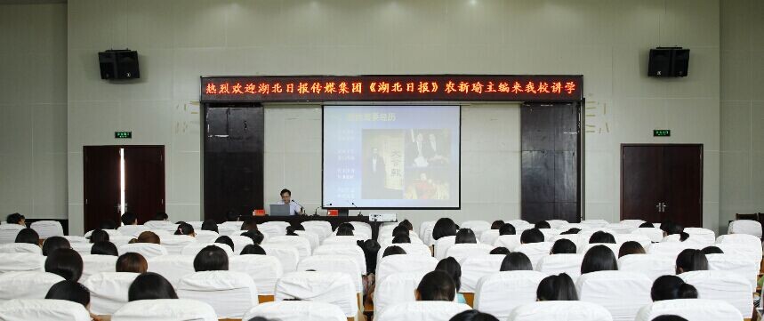 在近两个多小时的讲座中,农新瑜先生讲述了“自我的成长经历”、“我眼中的武汉”、“荆楚文化”和“当代大学生如何成长”等话题。他以广泛真实的视角,以亲切生动的语言,向在座的师生们展现了荆楚的人文风情,特别在谈到荆楚文化的内容和特色时引起师生的强烈共鸣。农新瑜先生讲座贴近生活、贴近学生,他结合自身成长和学习的经历,谈到大学生如何融入社会并更好成长时强调要把书本知识与社会实践有机的结合起来,他建议学生们在做事方面要专注、敬业;在社会工作上要广泛参与。要逐步加强社会适应能力,有独立性地选择价值目标的能力,提高自我控制能力,提升人文素养高度。师生们被农新瑜先生平实而有感染力的讲座深深感染。