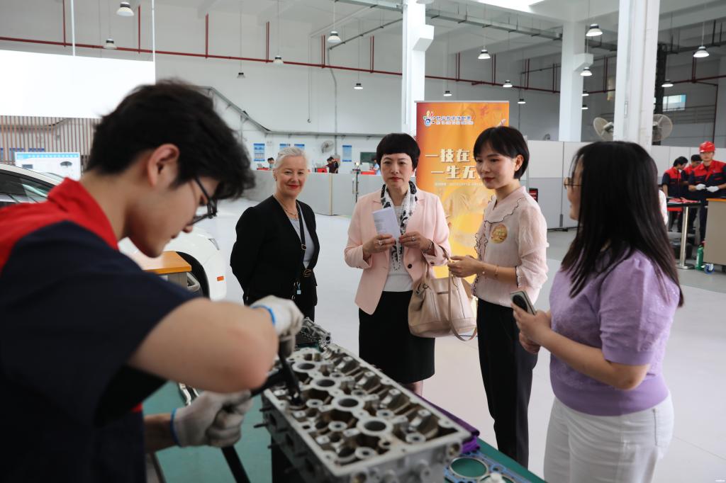 赞戴瑷伶参赞分享了澳大利亚职业教育的TAFE(技术与继续教育)体系经验,提出在课程标准对接、教师培训、学生实习等方面建立长效合作机制的设想。她期待与学校在智慧物流、新能源汽车、无人机等领域开展合作,共同应对全球产业变革对人才的需求。