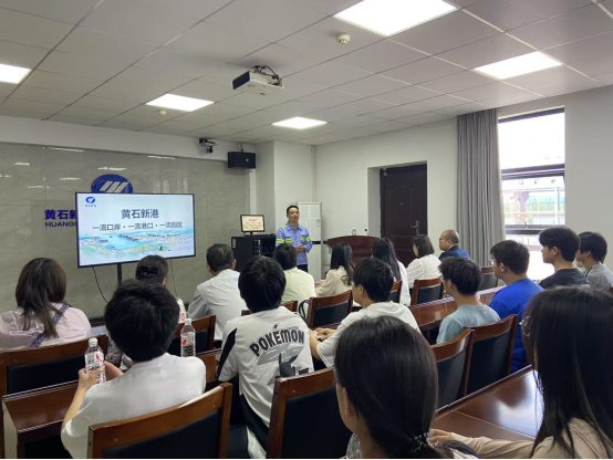 会后,校企双方代表参观考察黄石新港作业区。在12号泊位,师生近距离观摩了集装箱装卸流程与自动化调度系统;在三期气膜仓储区,企业技术骨干讲解了环保型仓储技术的应用场景与创新价值。通过现场教学,学生不仅加深了对理论知识的理解,更直观感受到智能化、绿色化港口建设的蓬勃活力。