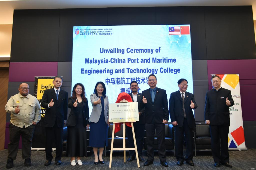 会上,由我校与马来西亚专艺技职学院、北京国泰星云教育科技有限公司联合创办的中马港航工程技术学院正式揭牌;我校联合丹戎帕拉帕斯港(PTP)、唐风国际教育集团共同发起的中马港航物流产教融合共同体正式揭牌。中马港航工程技术学院是我校首个海外分校,中马港航物流产教融合共同体是依托长江经济带港航物流产教融合共同体,由我校首次发起成立的跨国产教融合共同体。这是我校积极推动“职教出海”,推进职业教育国际化的里程碑。