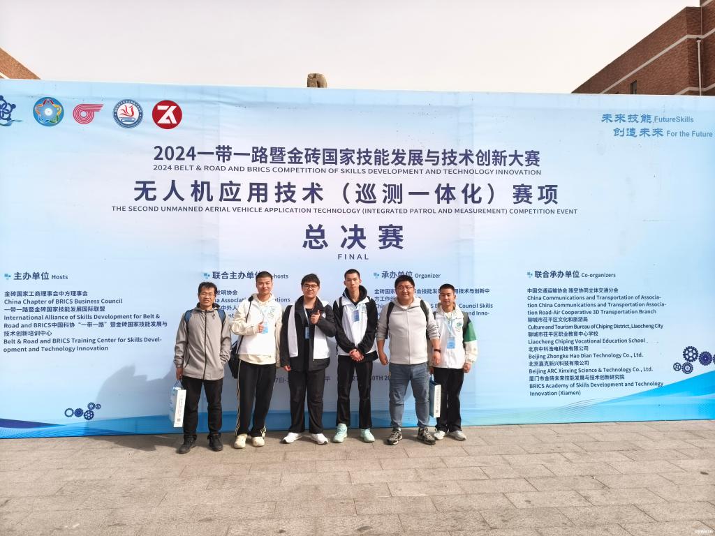 新闻网讯(通讯员 刘硕)3月30日,2024“一带一路”暨金砖国家技能发展与技术创新大赛无人机应用技术(巡测一体化)赛项总决赛在山东聊城圆满结束。我校智能制造学院无人机应用技术专业的吴凯丰、李忠超同学荣获高职组金牌(一等奖),刘汉武、高升同学荣获高职组银牌(二等奖)。李勤超、刘硕老师荣获教师组银牌(二等奖)。
