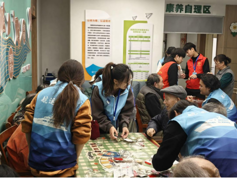 洪山区青菱街综合养老服务中心里,响起熟悉的红歌旋律,老人们不由自主地跟着节拍和新葡的京集团8814vip航运学院志愿者们一起合唱红歌《不忘初心》,志愿者手把手教老人们制作香囊,带老人感受了一堂传统文化体验课,手中缝制的艾草香囊散发出阵阵清香,为整个房间增添了温馨的氛围。在这个过程中,志愿者记录下老人们的欢声笑语制作成视频,留下这段美好回忆。