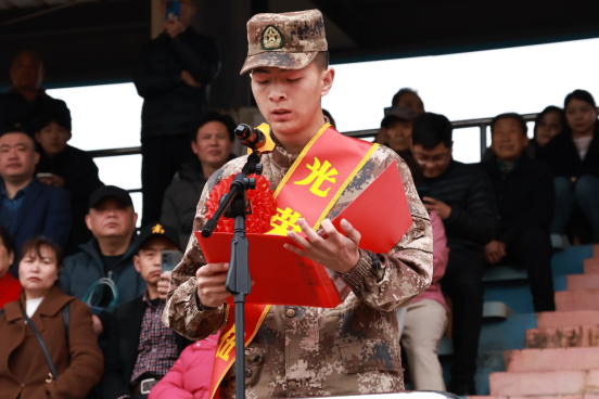 新闻网讯(记者 王勇 通讯员 庄浩)“进入部队后,我定会严守纪律,令行禁止,把每一次训练都当作实战,无惧任何艰难困苦,全力提升军事素养,为母校争光,为强军事业添砖加瓦!”22级计网军士(1)班钱卓卓同学字字铿锵,他的誓言在学校南苑运动场回响。