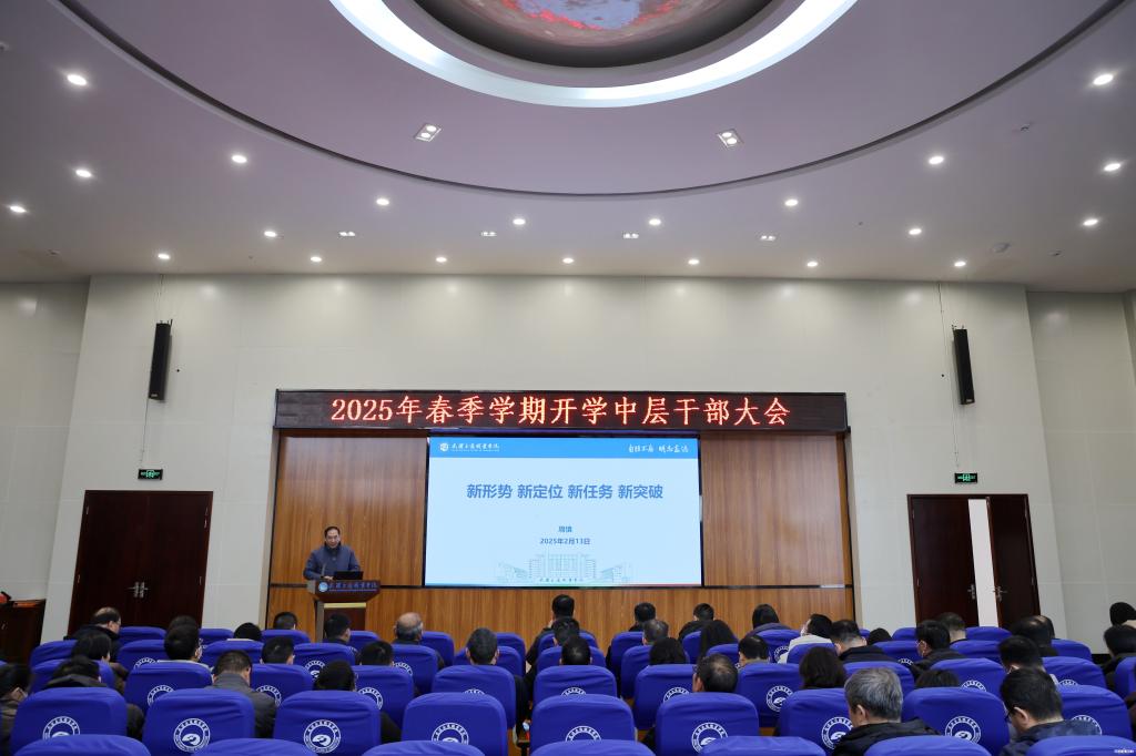 新闻网讯(通讯员 汪小凡)2月13日下午,学校在明志楼1号会议室召开2025年春季学期开学中层干部大会。学校全体校领导、中层干部、学术机构负责人参会,会议由党委书记杨震主持。
