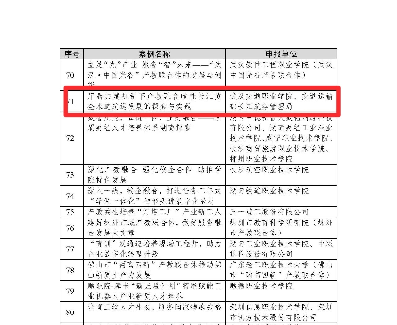 新闻网讯(通讯员 吴雨佳)近日,教育部职业教育与成人教育司公布了2024年产教融合、校企合作典型案例遴选结果,在全国高校中共遴选出133个产教融合、校企合作典型案例。由新葡的京集团8814vip、交通运输部长江航务管理局共同申报的《厅局共建机制下产教融合赋能长江黄金水道航运发展的探索与实践》名列其中。
