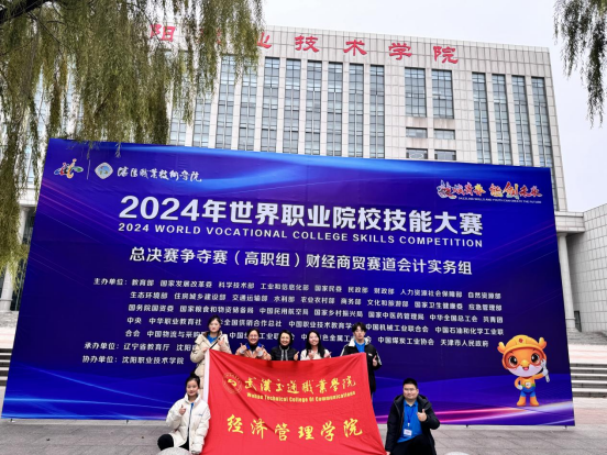 新闻网讯(记者 叶以萌 通讯员 黄书田)10月29日,2024年世界职业院校技能大赛总决赛争夺赛(高职组)财经商贸赛道会计实务赛项在沈阳职业技术学院圆满落下帷幕。我校经济管理学院2022级学生曹健、方凌云、蔡晓雯、沈宇豪,在来自全国31个省(自治区、直辖市)共计63支优秀队伍的激烈角逐中脱颖而出,最终荣获本次大赛银奖。此次比赛由经济管理学院院长徐敏亲自带队,大数据与会计专业教师黄书田、李骁寅指导。