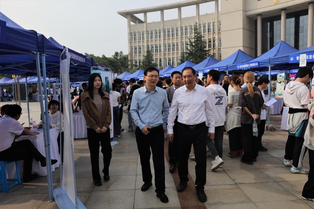 新闻网讯(通讯员 王峥)10月15日,洪山区人力资源局联合我校在自强广场举办“大学之城就业节”——洪山区2024年“学子聚汉”工程专场招聘会。洪山区区委组织部副部长卢庭阳、人力资源局副局长徐谦、区委组织部人才工作科科长王盛,学校校长周慎、副校长胡琴及相关部门负责人到现场视察招聘会情况。