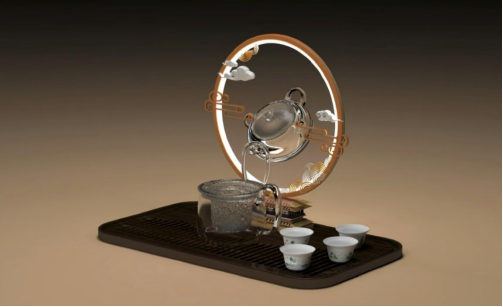 国赛一等奖获奖作品《鹤酌云华》,由22产品艺术设计(1)班的潘一粟、李亮、胡有为设计的一款集实用性与美学于一体的创新产品,将传统韵味与现代审美的完美交融,旨在提升日常生活品质,营造闲适优雅的品茗氛围。潘一粟介绍说,该设计灵感源自日常使用的自动倒水茶具与夜灯功能的巧妙结合,以水韵精神为核心,辅以现代审美视角,匠心独运地打造出一套包含五个部件的独特组合。其中,黄鹤楼元素的底座寓意深远,象征着对远方的憧憬与家乡的眷恋;水韵纹样的白瓷杯,流淌着东方古典美;祥云缭绕的灯架、质朴典雅的木制茶盘,以及晶莹剔透的玻璃材质茶壶与公道杯,共同构成了这款闲适泡茶神器,每一处细节都透露着对传统文化的尊重与现代生活的融合。