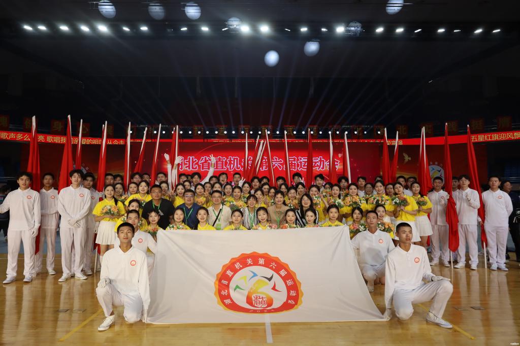 新闻网讯(记者 欧静)9月26日,湖北省直机关第六届运动会在洪山体育馆开幕,我校74名志愿者受邀参与开幕式现场的表演工作。其中40名女生作为鲜花手表演者、34名男生是红旗手表演者,我校志愿者是参演队伍中表演动作最为复杂,场上站立时间最长的团队。