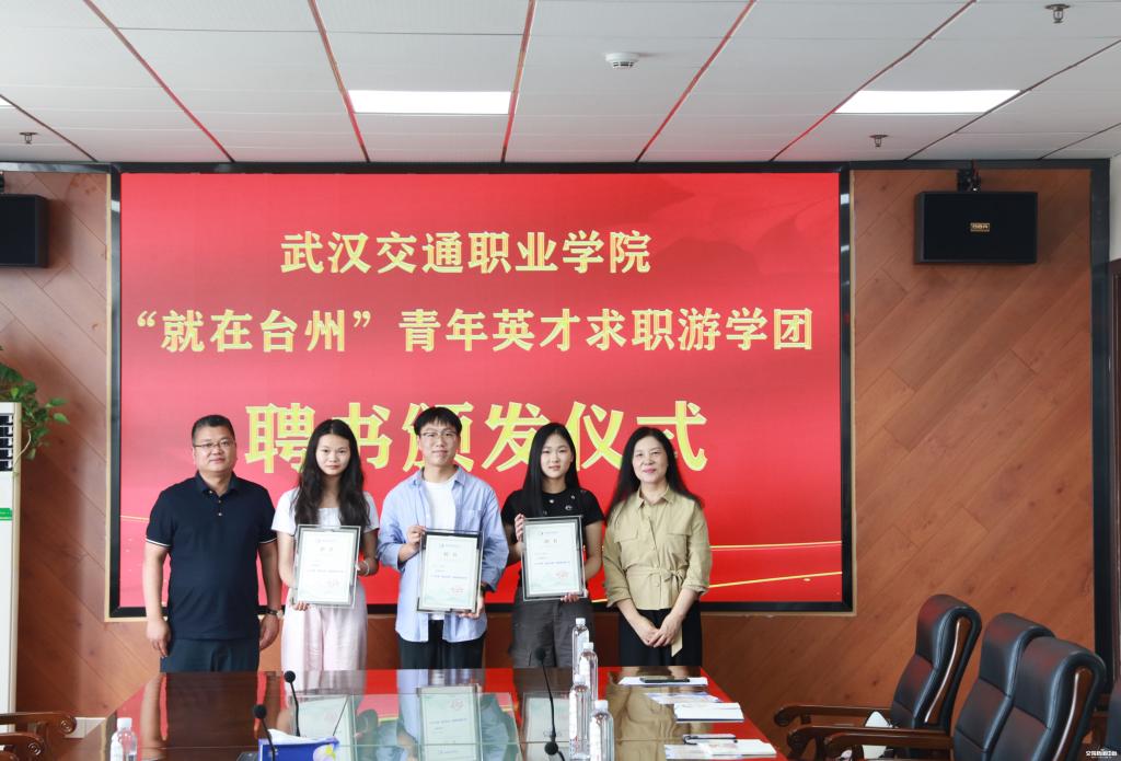 会上,双方领导为我校学生代表颁发青年英才求职游学团聘书。