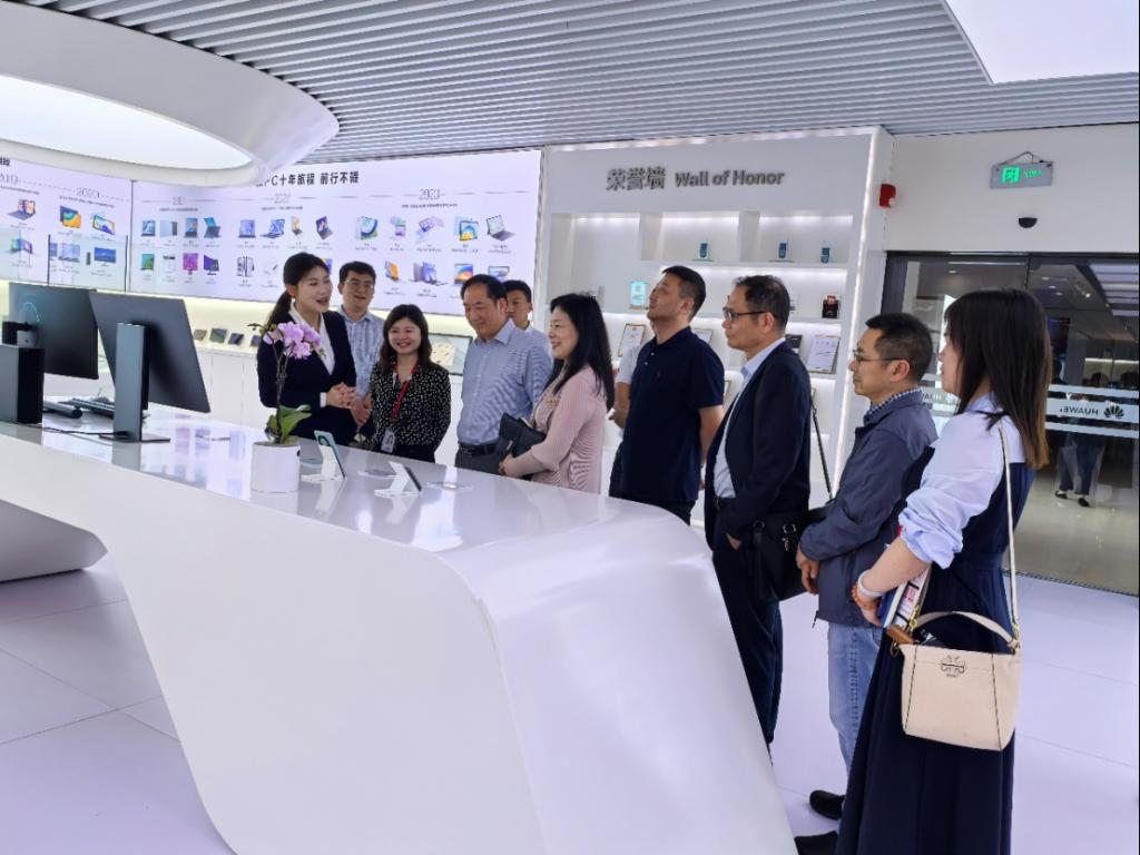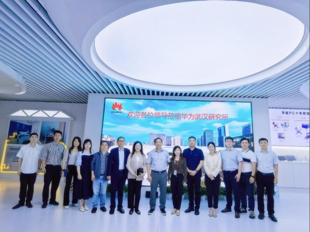华为技术有限公司湖北政企教育行业总经理范林芳、开发者创新中心高级产品经理陈银豪等部门负责人陪同校长周慎一行参观了华为在数字底座、城市智能体、城市运行管理中心、智慧园区IOC、智慧园区视频行业应用、行业感知智能协作企业无限、F5G WiFi6、数字能源等领域的前沿业务和科技产品。