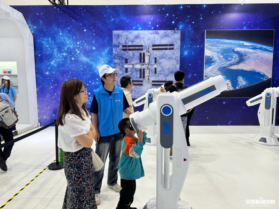 本次航天科普系列展览分为了科普展区和航天产业成就展区。在科普展区,嘉宾们依次参观了月球样品、返回舱、国旗实物,体验了触碰月球、火箭发射、1:1核心舱、生日天气查询等设备,让大家有一种身临其境的互动体验。随后又去往了航天产业成就展区,了解国家航天产业成就、最新成果和发展趋势。