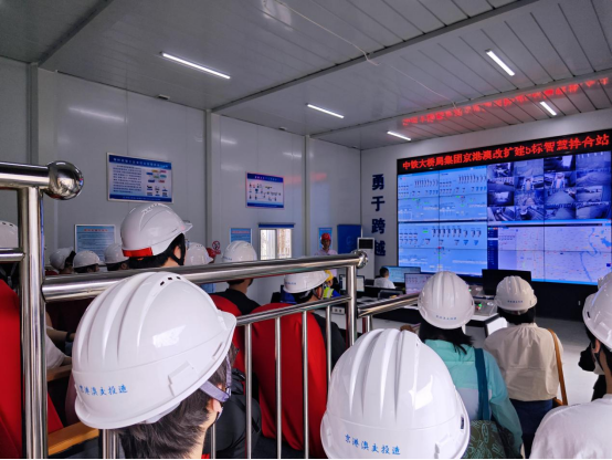 在混凝土配送中心,拌合站站长陈建桥正通过大屏幕实时监控拌和站内生产情况,并依据生产需要下达相关指令。站长为同学们介绍了混凝土智慧拌合站如何通过传感设备和智能控制实现生产成本的节约和混凝土质量的精准控制,沉浸式的现场教学让同学们大呼“好厉害!”。