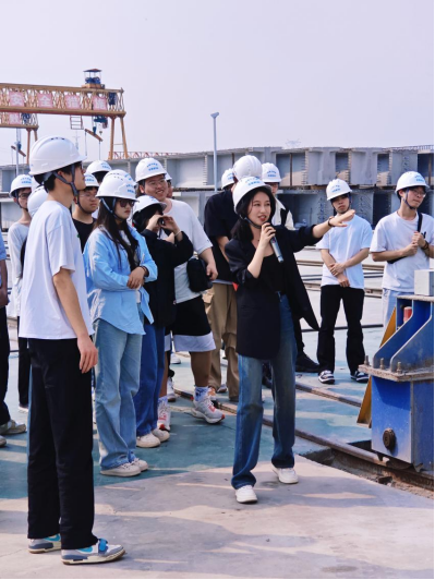 何舒婷教师在存梁区讲解T梁的构造与预制工艺