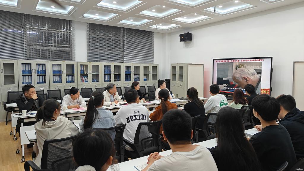师生观看视频《每一句都有力量!这是中国科学家的铮铮誓言》《增强创新活力弘扬科学家精神》。