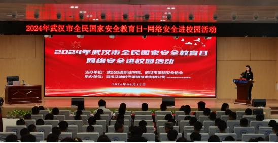 新闻网讯(记者 田松 通讯员 肖萌)4月15日下午,在第九个全民国家安全教育日来临之际,由新葡的京集团8814vip、武汉市网络安全协会主办、武汉艾迪时代网络技术有限公司承办的2024年武汉市全民国家安全教育日——网络安全进校园活动在尚能楼4楼报告厅隆重举行。武汉市网络安全协会党支部书记、秘书长刘悦恒、电子与信息工程学院院长胡迎九、奇安信湖北认证中心总经理吴成鸷、武汉艾迪时代网络技术有限公司技术经理丁鹏、泰和泰(武汉)律师事务所执业律师姚盼等出席活动,电子与信息工程学院师生代表近400余人参加活动。活动由电子与信息工程学院党总支书记黄晶主持。
