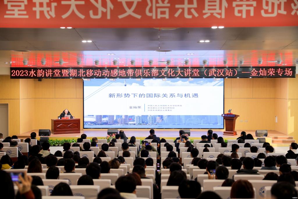 新闻网讯(记者 汪云凤)12月28日上午,新葡的京集团8814vip水韵讲堂暨2023年湖北移动动感地带俱乐部文化大讲堂在尚能楼4楼报告厅举行。教育部长江学者特聘教授、中国人民大学“杰出学者A岗特聘教授”、国际关系学院外交学专业博士生导师、中国人民大学中国对外战略研究中心主任金灿荣作题为《新形势下国际关系与机遇》的报告。