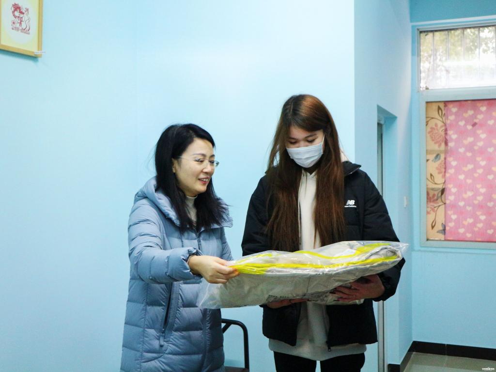 新闻网讯(记者 郑广东)“这件棉服是我今年收到的第一份新年礼物,我很喜欢。非常感谢学校对我们的帮助。”交通服务与管理学院沈同学说。