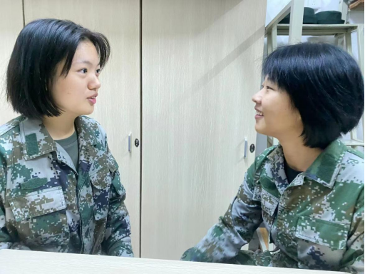 看着这些稚嫩的面孔,朱隽辉仿佛看见了两年前刚入学的自己,从懵懵懂懂到坚毅果敢,“如果可以,我想把自己的所学所悟都教给这些小姑娘们”。 朱教官一直是学员们的榜样。她将大量个人经验融入实际带训中,灵活运用正误对比、个人体会、分组练习、评比竞赛等多种方法,有效提升了训练效果。对于内务卫生管理,朱隽辉的要求相对严格,她走进宿舍指导学生,怎么叠好“豆腐块”、怎么整理军装、怎么摆放洗漱用品,手把手去帮助大家提高。