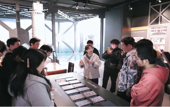 中国桥梁博物馆馆长、学校“三进一融”思想导师成莉玲带领大家走进武汉长江大桥的馆藏文物区,向同学们介绍武汉长江大桥建设总工程师汪菊潜所使用的计算尺,讲述汪菊潜的“建桥故事”,领略了中国桥梁人艰苦奋斗、开拓创新的精神和风采。