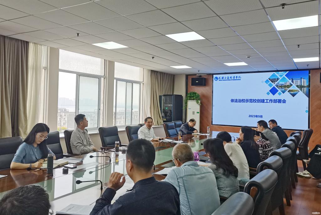 新闻网讯(通讯员 郑文路)9月22日,学校召开依法治校示范校创建工作部署会,会议深入学习贯彻习近平法治思想和上级有关法治工作重要文件、会议精神,就推进实施“依法治校战略”、做好依法治校示范校创建工作,作出部署安排。党委书记杨震、校长周慎出席会议并讲话。会议由学校办公室主任、法制办主任胡琴主持。