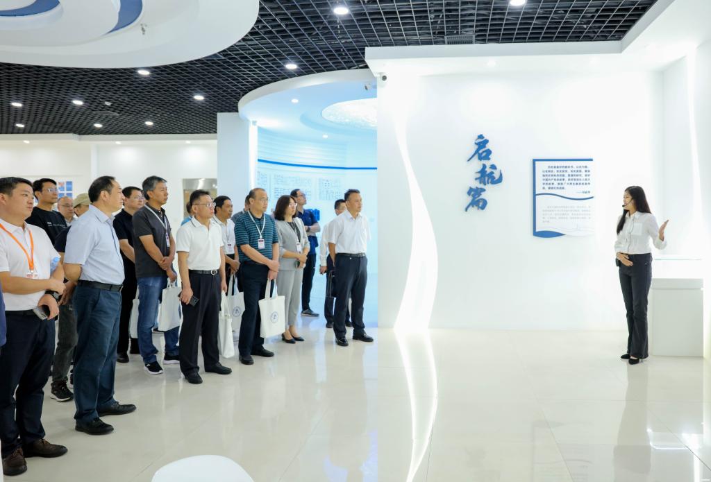 领导嘉宾们还参观了智慧船运虚拟仿真实训中心。领导们在大屏虚拟观影区沉浸式体验了船坞搭载、船舶下水等船舶制造流程,在MR/VR虚拟交互实训区了解船舶搭载、邮轮内装、精度控制等虚拟实训系统,真切感受到虚拟仿真实验和真实实验结合的优势。