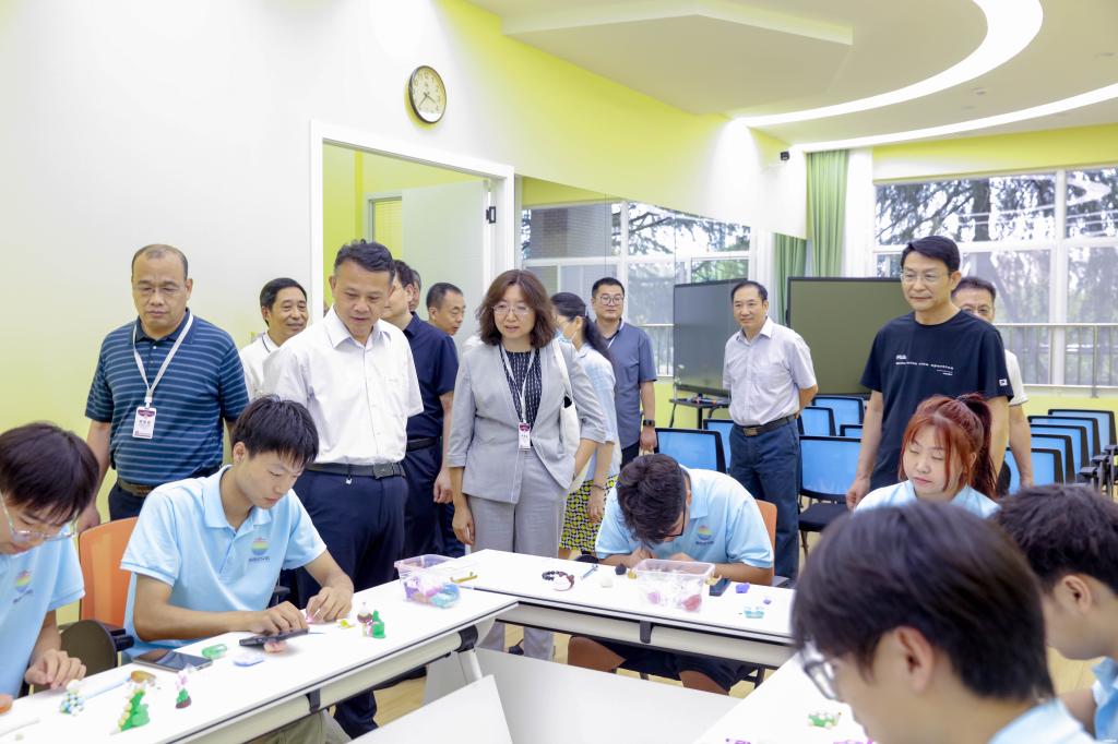 在大学生心理健康中心,领导们参观了情绪宣泄室、团体辅导室等区域,详细了解园艺、沙盘、情景等心理疗法和集教育、测评、活动、咨询、干预、研究等“多位一体”的工作模式。