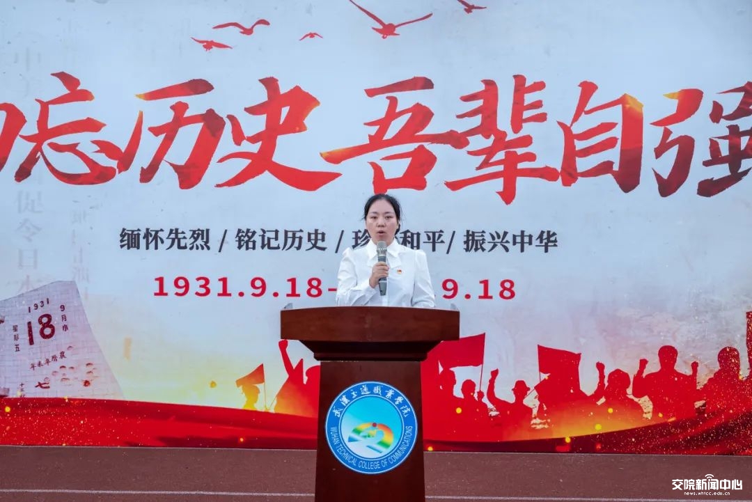 马克思主义学院汪玲老师在国旗下为现场师生讲授一堂主题为“铭记历史 砥砺前行”的思政课。汪玲老师带领现场师生回顾“九一八”事变中赵一曼同志忠贞为国,宁死不屈的爱国事迹。