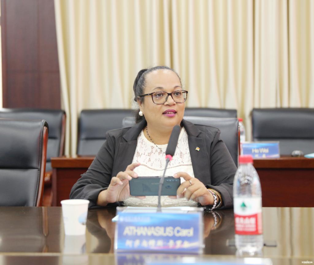 塞舌尔教师代表Carol Anne Athanaius发言,对塞舌尔教育部、中非职业教育联盟和各承接培训院校表达了衷心感谢。