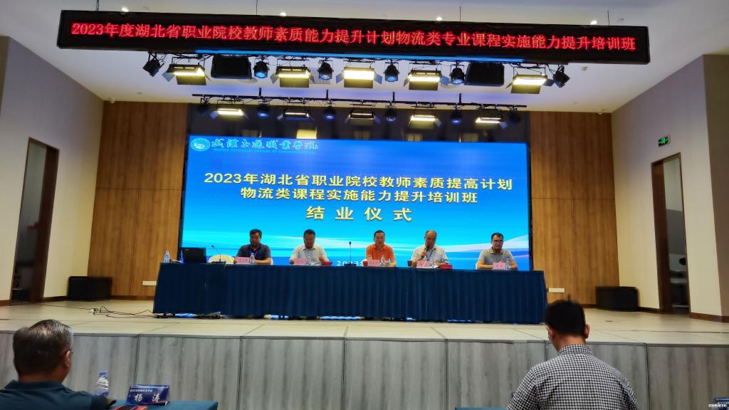 新闻网讯(通讯员 崔勇)8月25日,由我校承办的2023年湖北省职业院校教师素质提高计划物流类“课程实施能力提升”培训项目在维佳佰港大酒店举行结班仪式。学校继续教育学院院长程玉华、物流学院院长杨晋、物流学院副院长王江,本次培训项目班主任崔勇老师、张学明老师及80位来自全省物流类的一线参训教师参加结班仪式。仪式由物流学院院长杨晋主持。